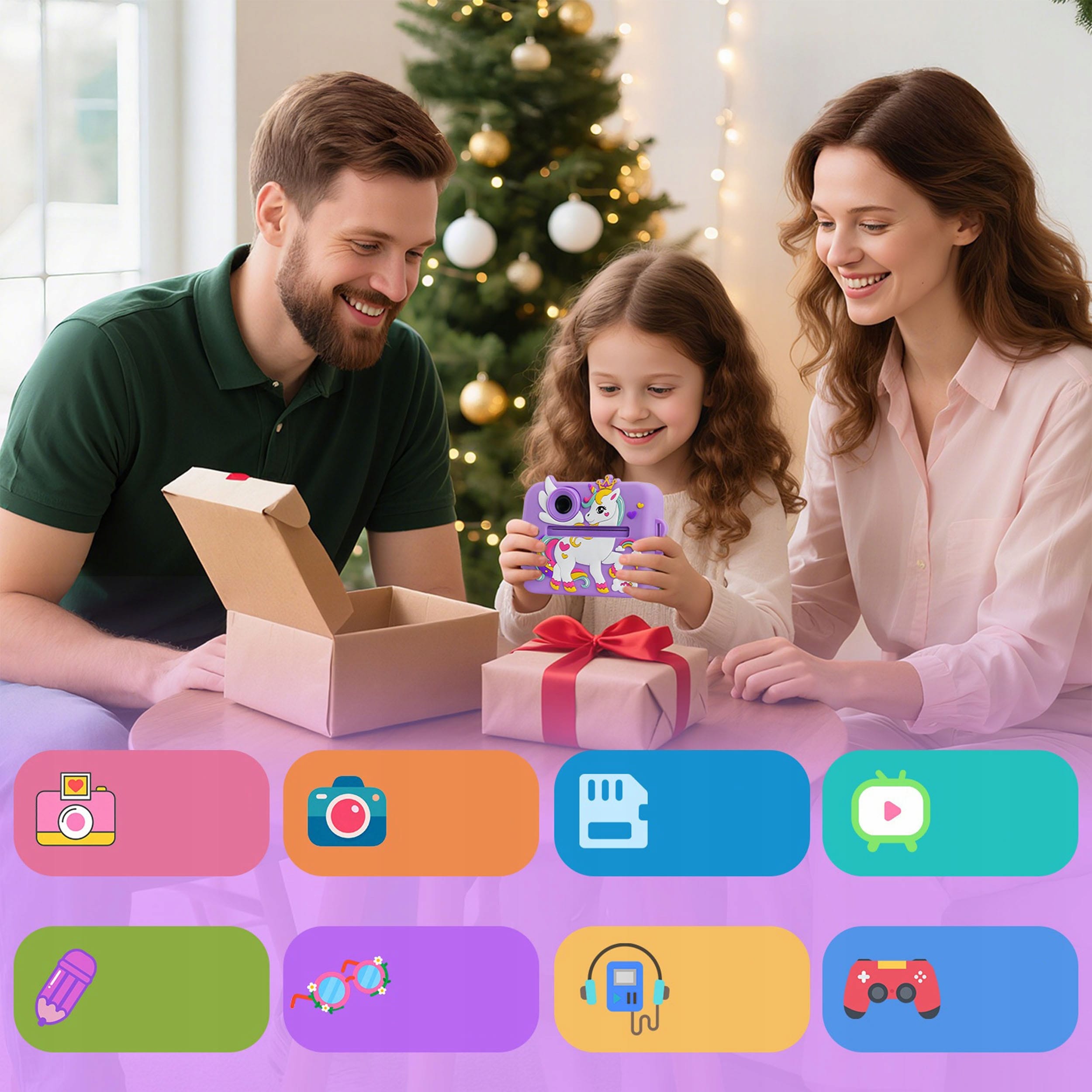 Otroški fotoaparat Unicorn PRO za takojšnje tiskanje je edinstven pripomoček z vgrajenim termičnim tiskalnikom in dvema kamerama , ki omogoča fotografiranje, snemanje videoposnetkov in takojšnje tiskanje fotografij brez črnila. Njegova barvita, očarljiva oblika spodbuja ustvarjalno igro, preprosto upravljanje pa ga naredi odlično darilo za vsakega mladega fotografa.